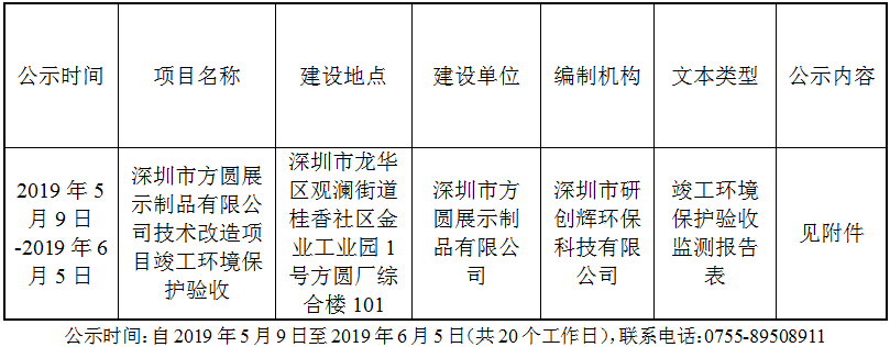 深圳市方圆展示制品有限公司 技术改造项目竣工环境保护验收监测报告表