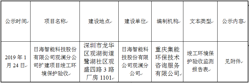日海智能科技股份有限公司观澜分公司扩建项目竣工环境保护验收监测报告表