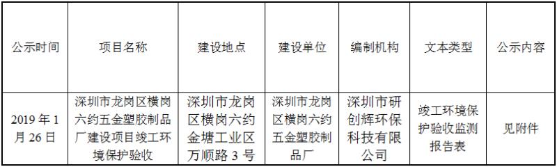 深圳市龙岗区横岗六约五金塑胶制品厂建设项目竣工环境保护验收监测报告表